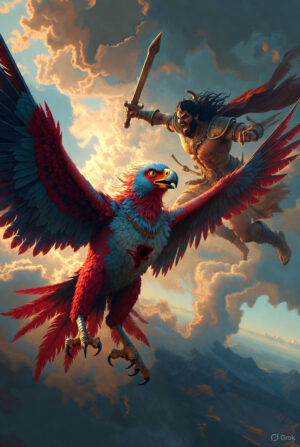 “நில் அரக்கனே! தர்மத்தின் விளைநிலத்தை அபகரித்துச் செல்லும் நீ, என் சிறகின் நிழலைக் கூடத் தாண்ட முடியாது!” என்ற பேரிடி முழக்கம் கேட்டது. அவன் கழுகு வேந்தன் சடாயு, தனது பிரம்மாண்டமான சிறகுகளை விரித்துக்கொண்டு, புஷ்பக விமானத்தின் பாதையை மறித்து நின்றான். சடாயுவின் ஒரு சிறகடிப்பு, நூறு சுழற்காற்றுகளுக்கு இணையான வேகத்தை உண்டாக்கியது. விமானம் நிலைதடுமாறியது.