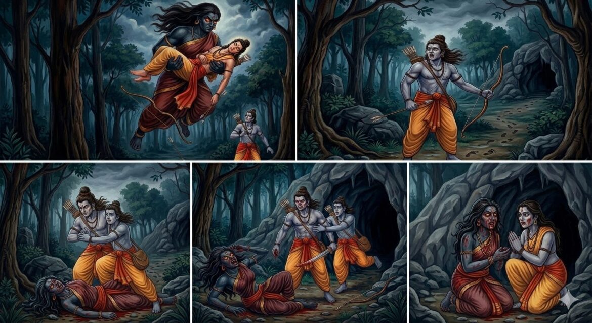 அவனது கண்களில் நீர் திரையிட்டது. அதே நேரம், அப்போது தொலைவில் ஒரு பெரும் அலறல் கேட்டது. அது ஒரு பெண்ணின் குரல், ஆனால் அதில் வேதனையும் வன்மமும் கலந்திருந்தது. இராமன் அந்தத் திசையை நோக்கி மின்னலெனப் பாய்ந்தான். அங்கே கண்ட காட்சி அவனை நிலைகுலைய வைத்தது.