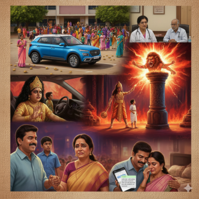 சின்னது, நடுத்தர அளவு, பெரியது எனக் கலந்துகட்டி இருக்கும் உருளைக்கிழங்கு மூட்டையை டபக்கெனத் திறந்து உருட்டி விட்டாற்போலச் சின்னப் பையன்கள், பெண்கள், கொஞ்சம் வளர்ந்தவர்கள், கொஞ்சம் உயரமானவர்கள் என மாணவ மாணவிகள் பள்ளிக்கூடத்தில் பரவி இருந்தார்கள். என்ன… நோ யூனிஃபார்ம். ஏனெனில் பள்ளி ஆண்டு விழா. கூடவே அவர்களது பேரண்ட்ஸ் எனத் தமிழில் சொல்லப்படும் பெற்றோர்கள் எனச் சென்று கொண்டிருக்க, பாவனி தனது ஹூண்டாய் வென்யூவை உள் செலுத்தி கார் நிறுத்தத்தில் நிறுத்திப் பின் கதவைத் திறந்தாள்.