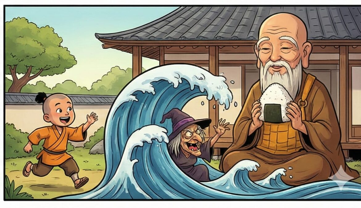 முன்னொரு காலத்தில், மலையில் இருந்த ஜப்பானியத் துறவிகளின் மடாலயத்தில் ஒரு பையன் சீடனாகச் சேர்ந்தான். அவன் குறும்புக்காரப்பையன். துறவி கற்றுத்தரும் பாடங்களைப் படிக்காமல் விளையாட்டுச் சிறுவனாக இருந்தான். பாடங்களைப் படிக்காமல் முயல்குட்டிகளின் பின்னால் ஓடுவது அவனுக்குப் பிடித்தது. மடாலயத்தில் அனைவரிடமும் குறும்புகள் செய்து விளையாடுவது அவனுக்குப் பிடிக்கும். அவன் திருந்துவதற்கு வேளை வரட்டும் என ஜப்பானியத் துறவி அவனுடைய குறும்புகளை மன்னித்தார்.