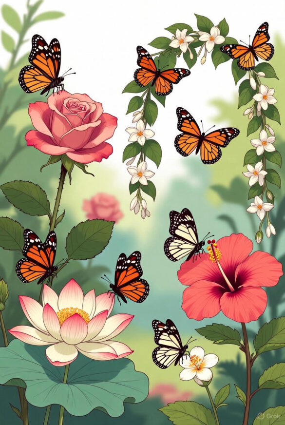 ஜிங்காவும் ஆர்வமாகக் கிளம்பியது. சுற்றிப் பார்த்தது. அதுக்குள்ள நிறைய பட்டாம்பூச்சிகள் அழகான பெரிய மலர்கள்ல போய் தேனருந்த ஆரம்பிச்சிட்டாங்க.