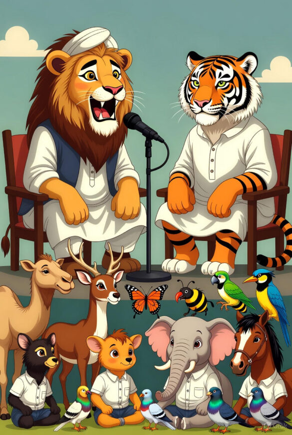 தலைமை ஆசிரியர் சிங்கமும், உதவித் தலைமை ஆசிரியர் புலியும் விழா மேடையில் ஏற…