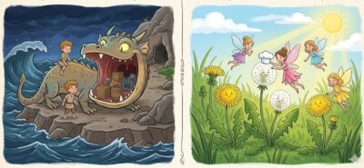 தேவதைகள் ஒவ்வொருவரும் வெவ்வேறு திசைகளில் பறந்து சென்று குரல் எழுப்புவது யார் என்று ஆராய்ந்தனர். புற்களின் நடுவே, சிங்கத்தின் பற்களைப்போன்ற இலைகள் கொண்ட ஒருவகைச் செடிகளில் இருந்துதான் அந்த அழுகுரல் எழுகிறது என்பதை அவர்கள் கண்டறிந்தனர்.