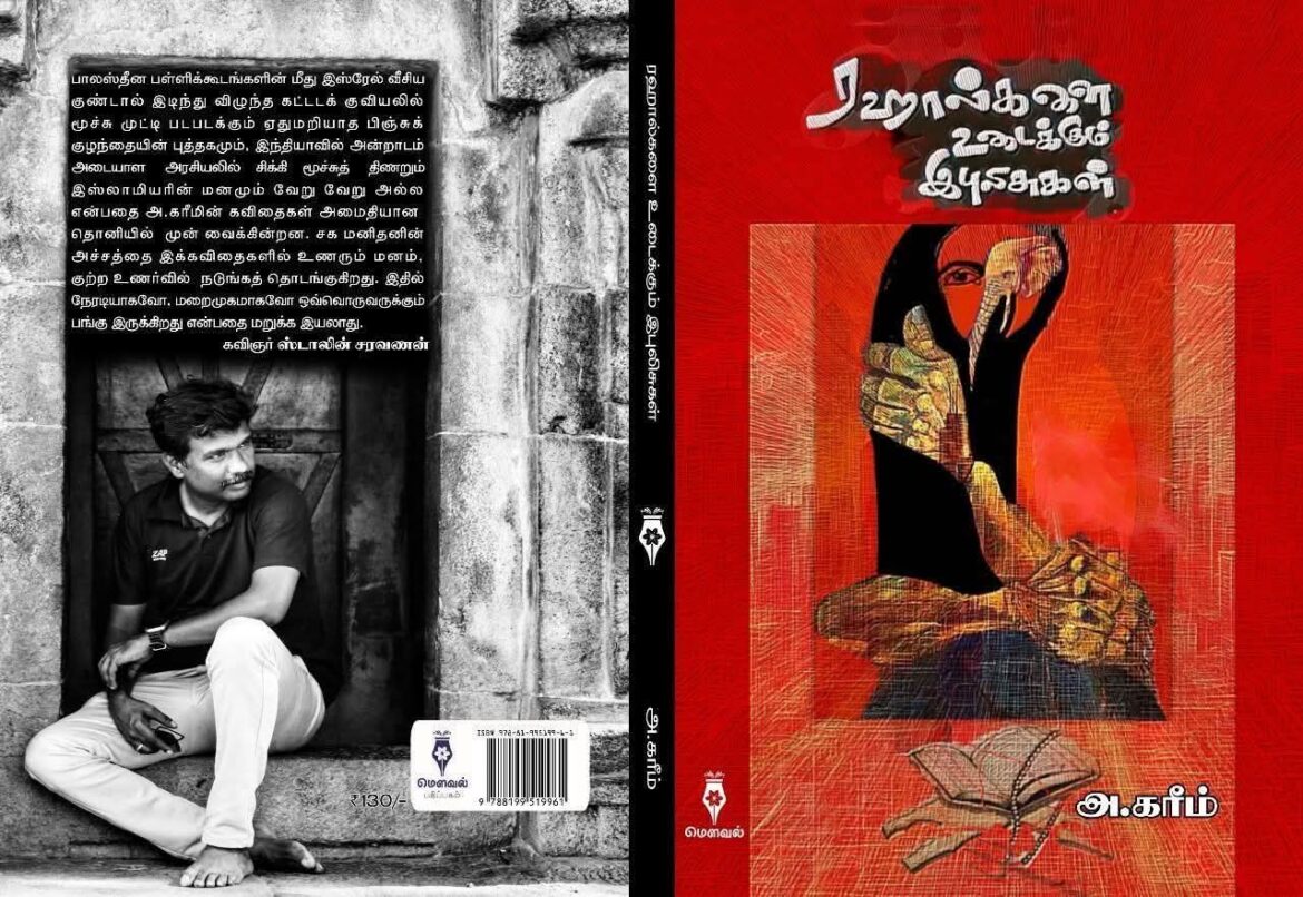 புதிதாக வெளிவந்திருக்கும் அவருடைய, ”ரஹால்களை உடைக்கும் இபிலிசுகள்” (ரஹல் என்பது புனித குர்ஆனை வைத்து ஓதும் அழகிய மரப்பலகை. “இபிலிசுகள் ” என்றால் சாத்தான்கள் என்பது பொருளாகும். இந்தத் தலைப்பே எப்பேர்ப்பட்ட பதட்டத்தை நிலையாக்கியிருக்கிறது) கவிதைத் தொகுப்பில் சில கவிதைகள் மிகுந்த அதிர்வைத் தருகின்றன.