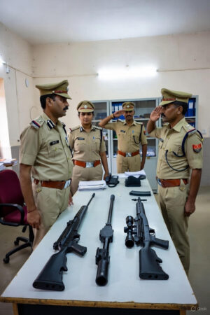 நல்ல அகல நீளமான அந்த மேஜையின் நடுப்புறம் நான்கு ரைஃபிள்கள் கழற்றி வைக்கப்பட்டிருந்தன. ரைஃபிளின் ஸ்டாக் என்றழைக்கப்படும் அடிப்பகுதி, ஆக்‌ஷன் எனப்படும் நடுப்பகுதி, பேரல் எனப்படும் மேற்பகுதி.