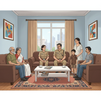 ”அன்னிக்கு பையன் பக்கத்து வீட்ல விளையாடப் போறேன்னு சொல்லிட்டுதான் போயிருக்கான்.. அங்க அவன் வயது குட்டிப்பொண் ஒண்ணு உண்டு. அதோட விளையாடிட்டு, கொஞ்சம் சாப்பிட்டுட்டு அங்கேயே தூங்கிட்டான். அந்த அம்மாவும் இவங்க கிட்ட சொல்லலாம்னு வந்தா இவங்க கனகாரியமா ஆட்டோ பிடிச்சு உங்க கிட்ட வந்துட்டாங்க சார்”