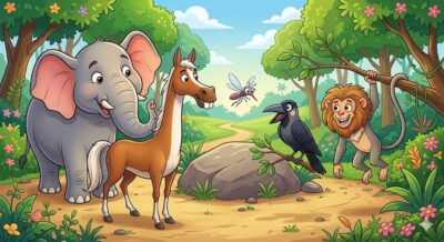 கொசு மீண்டும் புறப்பட்டது. அப்படிச் சென்றுகொண்டிருந்தபோது ஓர் இடத்தில் குதிரை ஒன்று எதிரில் வந்தது.