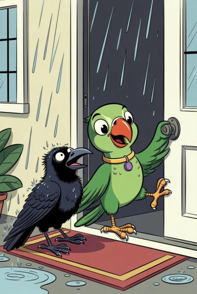 ஒரு புளியமரத்தில் காக்கம்மாவும் கிளியம்மாவும் இருந்தன. காக்கம்மாவுடையது கூடு. கிளியம்மாவுடையது வீடு. ஒருநாள் இராத்திரி பலத்தச் சூறாவளி காற்றும் மழையுமாக இருந்தது. அதில் அந்தக் காக்கம்மாவின் கூடு கொஞ்சம் பறந்துபோனது. கிளியம்மாவுடையது வீடு இல்லையா… அதற்கு எதுவும் ஆகவில்லை. காக்கம்மா மழையில் நனைந்துகொண்டு… குளிரில் நடுங்கியபடி கிளியம்மா வீட்டுக்கு அருகில் வந்து “கிளியம்மா…. கிளியம்மா… கொஞ்சம் கதவை திறப்பியா… என் கூடு விழுந்துடிச்சு” என்று பாவமாகக் கேட்டது. கிளியம்மா மிகவும் நல்லவள் இல்லையா… அதனால் உடனே கதவைத் திறந்து காக்கம்மாவை உள்ளே வரச் சொன்னது.