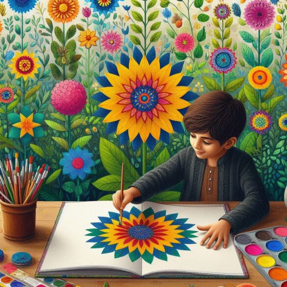 அருணுக்கு ஓவியம் வரையவும் பிடிக்கும். ஒரு நாள் அவன் ஒரு தாளை எடுத்து ஒரு பெரிய பூவை வரைந்தான். பூவுக்கு மஞ்சள், பச்சை, நீலம் என்று விதவிதமாக வண்ணங்களைக் குழைத்துத் தீட்டினான். அந்த ஓவியம் அவனுக்கு மிகவும் பிடித்திருந்தது.