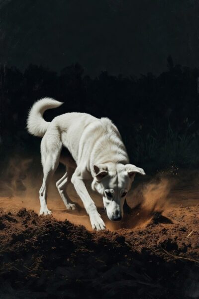 பழைய நாட்களை நான் யோசித்துக் கொண்டிருந்தபோது, வெள்ளை நாய் திடீரென்று எழுந்து நின்றது. காதுகளை உயர்த்தி வெளியே பார்த்து ஒரு குறுகிய குரல் எழுப்பியது. அந்த குரல் சாதாரண எச்சரிக்கை அல்ல; அது “வா” என்று அழைப்பது போல இருந்தது. நான் அதன் பின்னால் எழுந்து சென்றேன். அது வீட்டை விட்டு வெளியே போய், தெருவின் ஓரமாக, கோயில் பக்கம் செல்லாமல், குளம் பக்கம் திரும்பாமல், ஊரின் எல்லையில் இருக்கும் உடைமரங்கள் அடர்ந்த பகுதிக்குள் நுழைந்தது. நான் அதன் பின்னால் நடந்து கொண்டே இருந்தேன். நாய் நின்றது, மணத்தை முகர்ந்தது; பின்னர் ஒரு குறிப்பிட்ட இடத்தில் தோண்ட ஆரம்பித்தது. மண்ணிலிருந்து புழுதி எழும்பிற்று. அதன் நகம் சுரண்டிய ஓசை இரவின் அமைதியைக் கிழித்தது. அந்த ஓசைதான் என் உள்ளே இருந்த வெற்றிடத்தையும் சுரண்டத் தொடங்கியது.